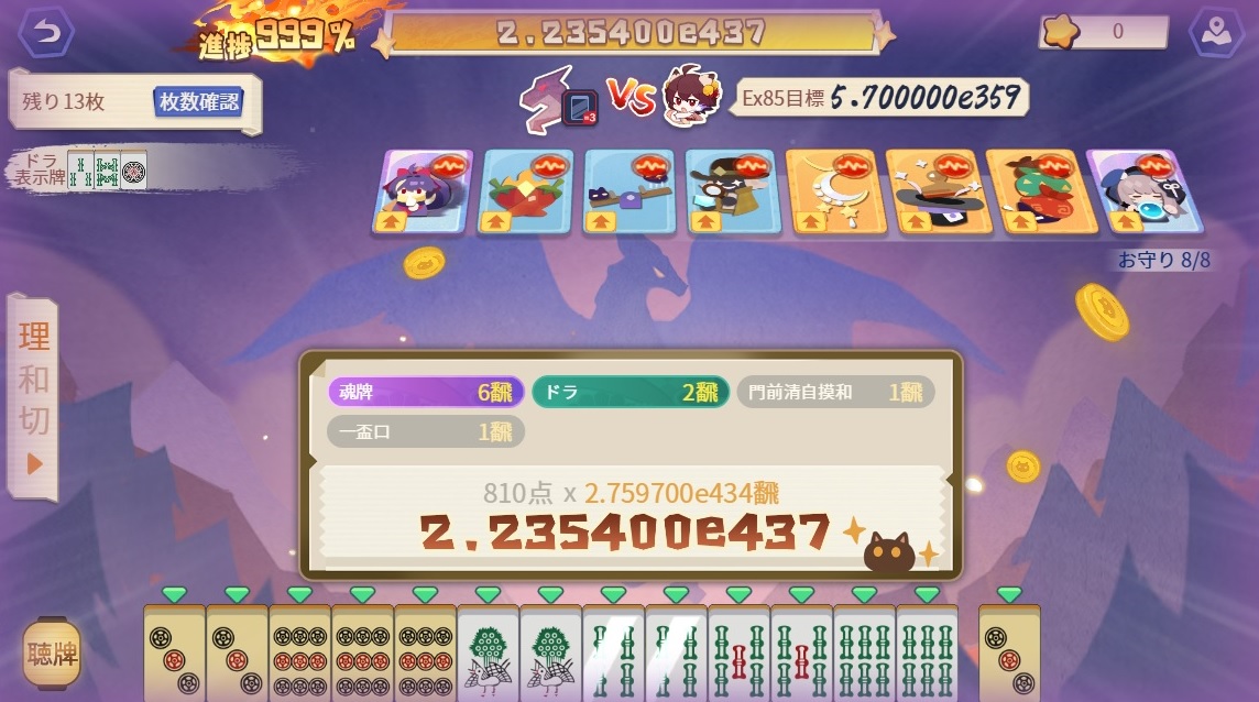 「牌スコア」と「お守り効果」のスクショを撮っていませんでした。